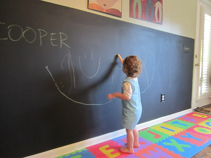 Paint one wall entirely in blackboard and give your child liberty to (officially) draw on wall.On one wall, organise their artworks, medals, certificates or any such memorable event for them to re-live.Dedicate a wall for learning by adding education tools like books, charts and games. (refer 5th point)